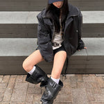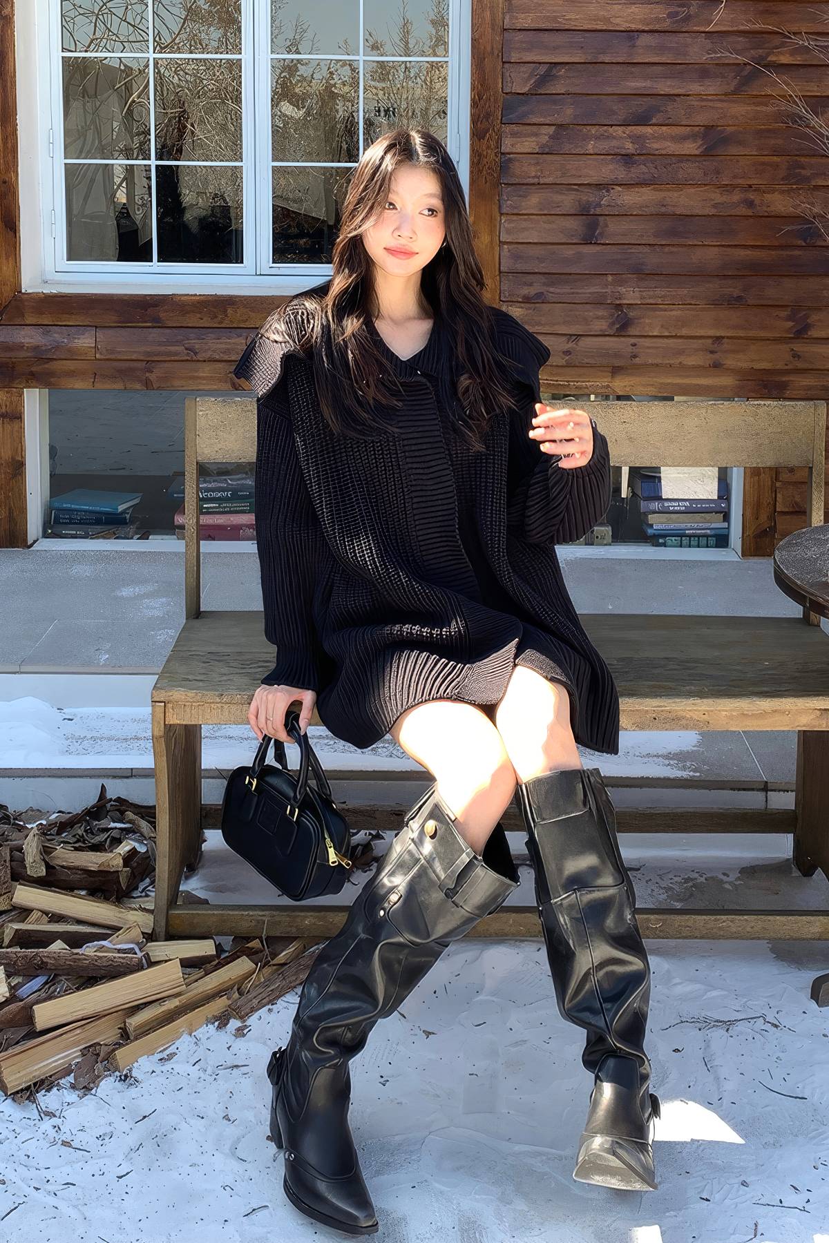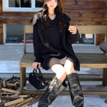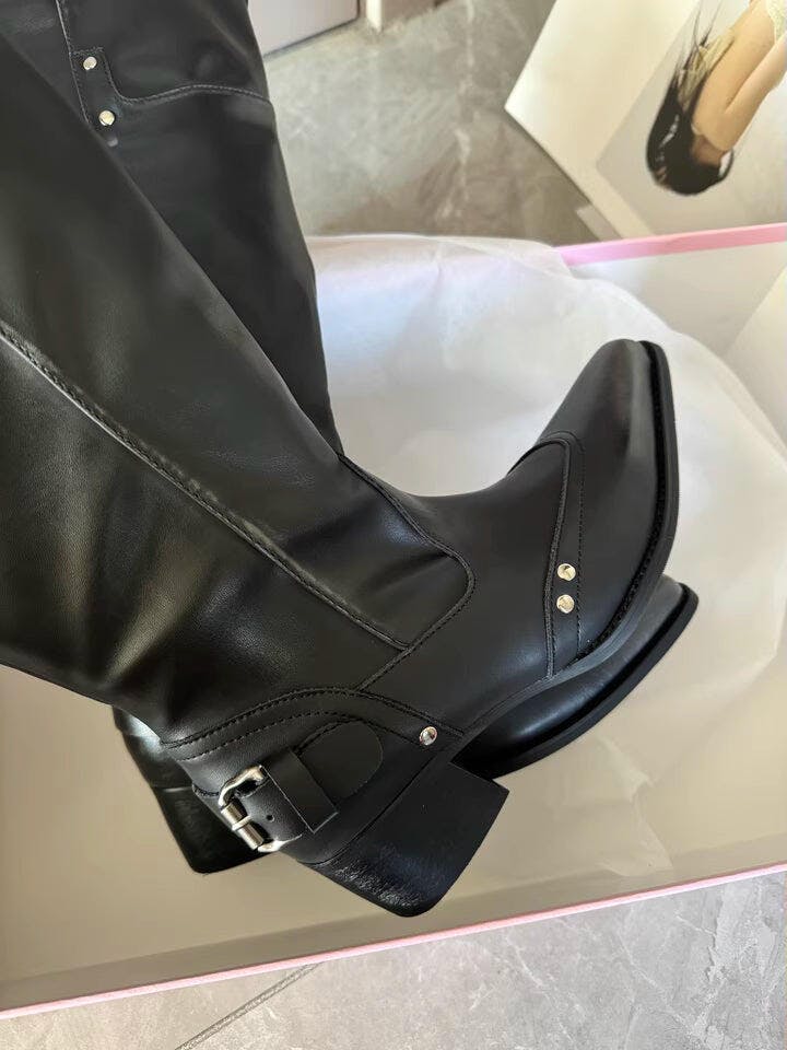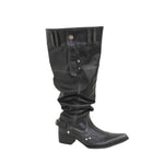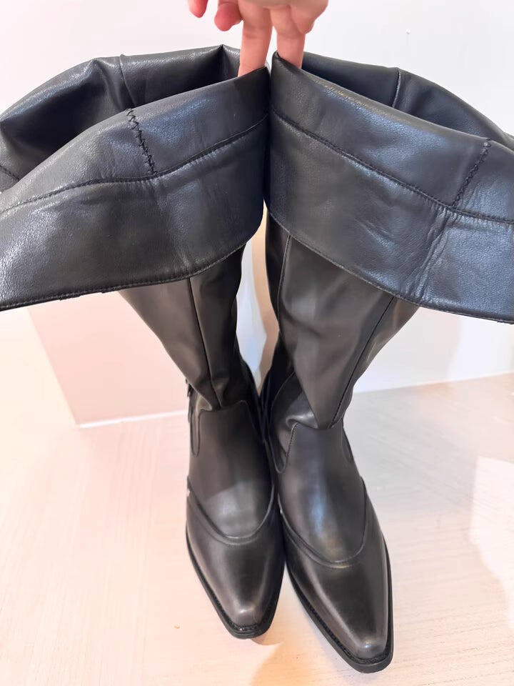 The High Fleece Leather Boots bring a sleek, structured shape with a soft fold-over design at the top. Made from genuine cowhide with PU lining, they feature a pointed toe, metal hardware, and a mid-block heel for everyday balance. The foldable cuff reveals a fleece interior, offering both style and warmth for cooler seasons.